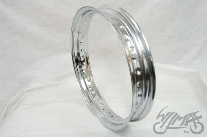Ocelový ráfek kola s rozměrem 3,00x18". Ráfek je vyroben z oceli. Povrch ráfku je chromovaný a leštěný. Počet otvorů pro dráty je 36.