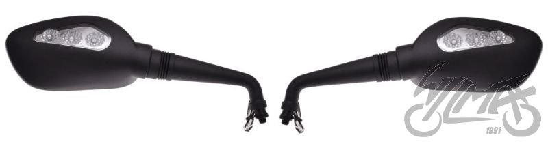 Sada univerzálních zrcátek se závitem M10. Zrcátka jsou homologovaná vybavena LED blikači.